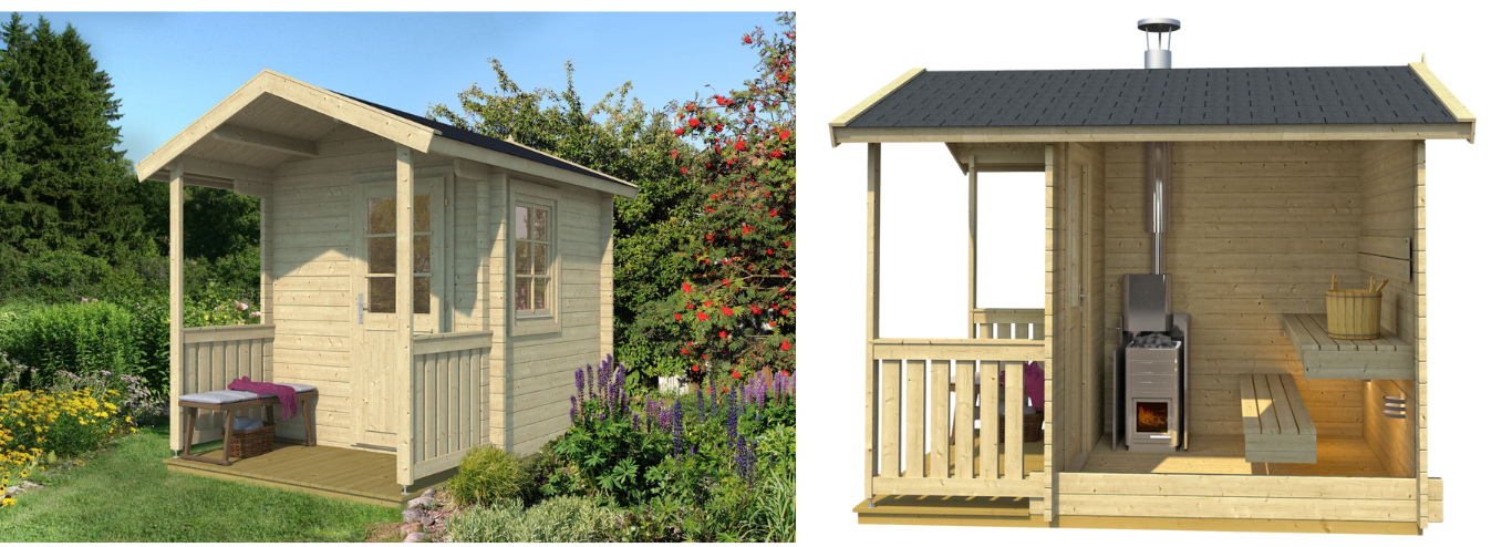 外気浴テラス一体型。省スペースながらも落ち着く癒し空間を実現。