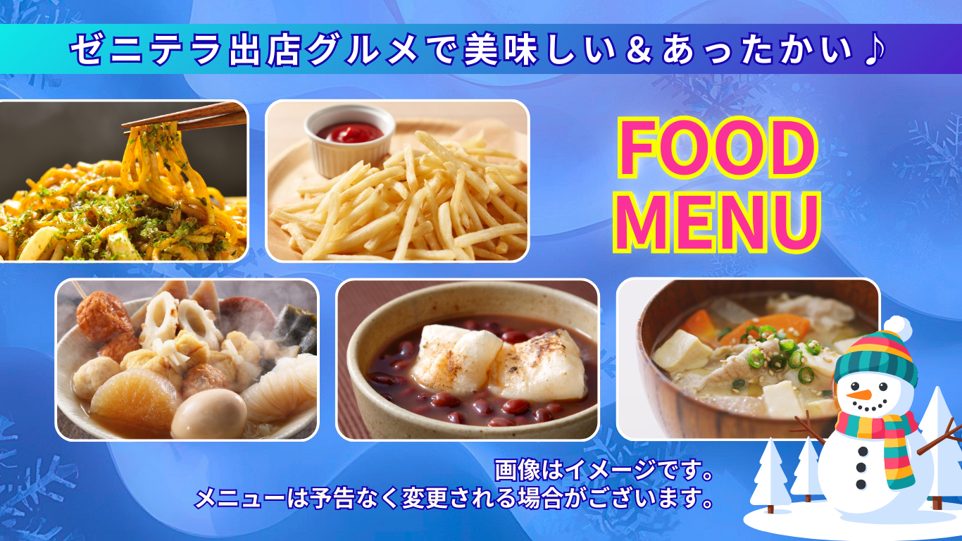 ※一部のメニューはゼニバコテラス店舗での販売となります。