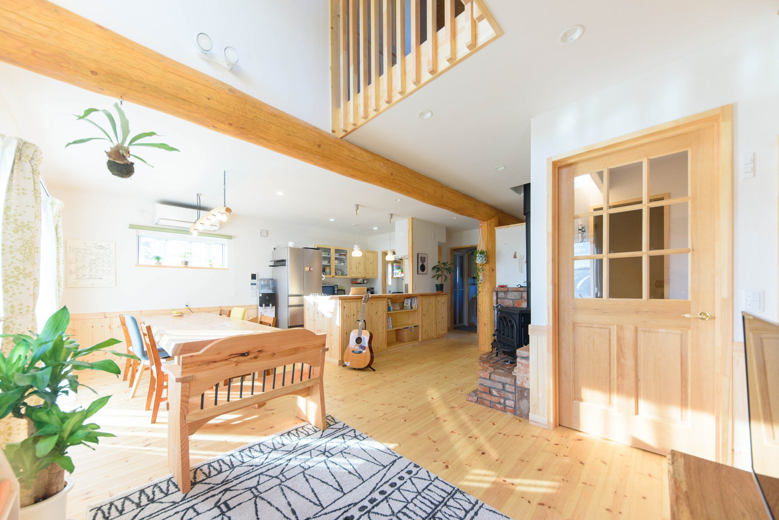 - 丸太で叶える壁が少ない開放的な間取り
